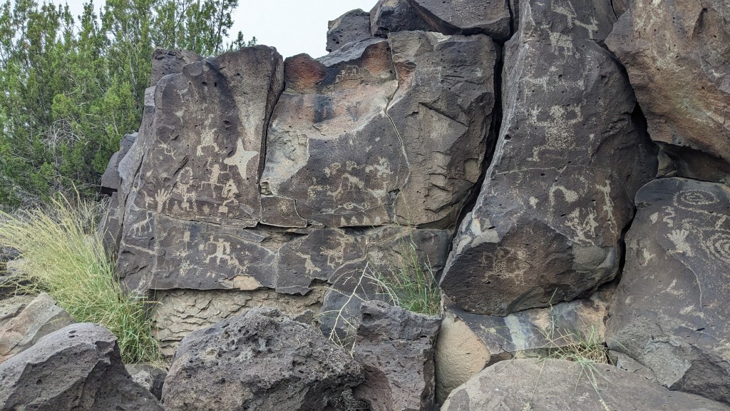 La Cienguilla Pretroglyphs in Santa Fe Another visit was right in our backyard to the Cienguilla Petroglyphs. It’s a short hike up the hill and then you’re blown away by the amazing art from the 13th -17th century Kersan speaking pueblo people. Luckily we visited before the federal shutdown because this like so many parks around NM are federally run.